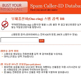 스팸전화 썸네일형 리스트형 제 휴대전화로 걸려 온 스팸전화번호를 공개합니다!(2) 지난 포스트에 이어 이번에도 최근에 걸려 온 스팸전화번호를 공개하려고 합니다. 지난 8월달에 휴대전화를 애니콜로 바꾸고 번호도 일부 바꿨지만 여전히 스팸전화가 걸려오는건 어떨 수 없더군요. (그래도 스팸차단이 잘 안되던 스카이 뮤직폰보단 나음) 제가 정리한 스팸전화번호 리스트에 포함된 전화번호가 뜬다면 스팸전화니 절대 절대 받거나 전화를 걸지 않기 바랍니다. (안 받아야 스팸전화에 덜 시달립니다. 전화를 받거나 전화를 걸게 되면 통화가 되었다는게 증명되는 셈이니 여러 회사들의 표적 대상이 됩니다) 아울러 여러분이 알고 있는 스팸전화번호가 있다면 댓글 등으로 제보해주었으면 좋겠습니다. 제발 스팸 문자/전화 없는 세상에서 살았으면 좋겠는데... 그런 세상이 올 수 있을련지... [2008년 11월중 걸려온 .. 더보기 부재중 스팸전화(One-ring) 여기서 검색하세요! 전에 포스팅한 제 휴대전화로 걸려온 스팸 전화번호를 공개수배합니다! 에서 제 휴대전화로 걸려온 스팸 전화번호를 지난 몇개월간 업데이트 했었는데... 마침 제 포스트에 댓글을 남긴 Kita님의 글을 보고 좋은 사이트를 발견할 수 있어 이를 적극 알려드리고자 합니다. 위에 보이는 Spam Caller-ID Database 검색서비스는 휴대전화 혹은 집전화기 등지로 걸려온 전화번호를 "-"표시 없이 입력하면 해당 번호가 스팸전화번호인지 아닌지 안내해줍니다. 참고로 이 검색서비스를 제작하신 Kita님의 글에 따르면 스팸 가능성 번호의 99%는 휴대전화 요금을 미리 내고 타인 명의로 개통하는 선불폰으로 위의 검색서비스는 전화번호 검색시 선불폰 국번 여부를 식별하여 알려주는 기능을 가지고 있습니다. Spam Cal.. 더보기 이전 1 2 다음